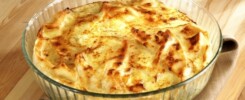 Отгоре се сипва останалата юфка, останалия сос и се поръсва с остатъка от кашкавала. Пече се 20 минути в загрята на 200 градуса фурна.